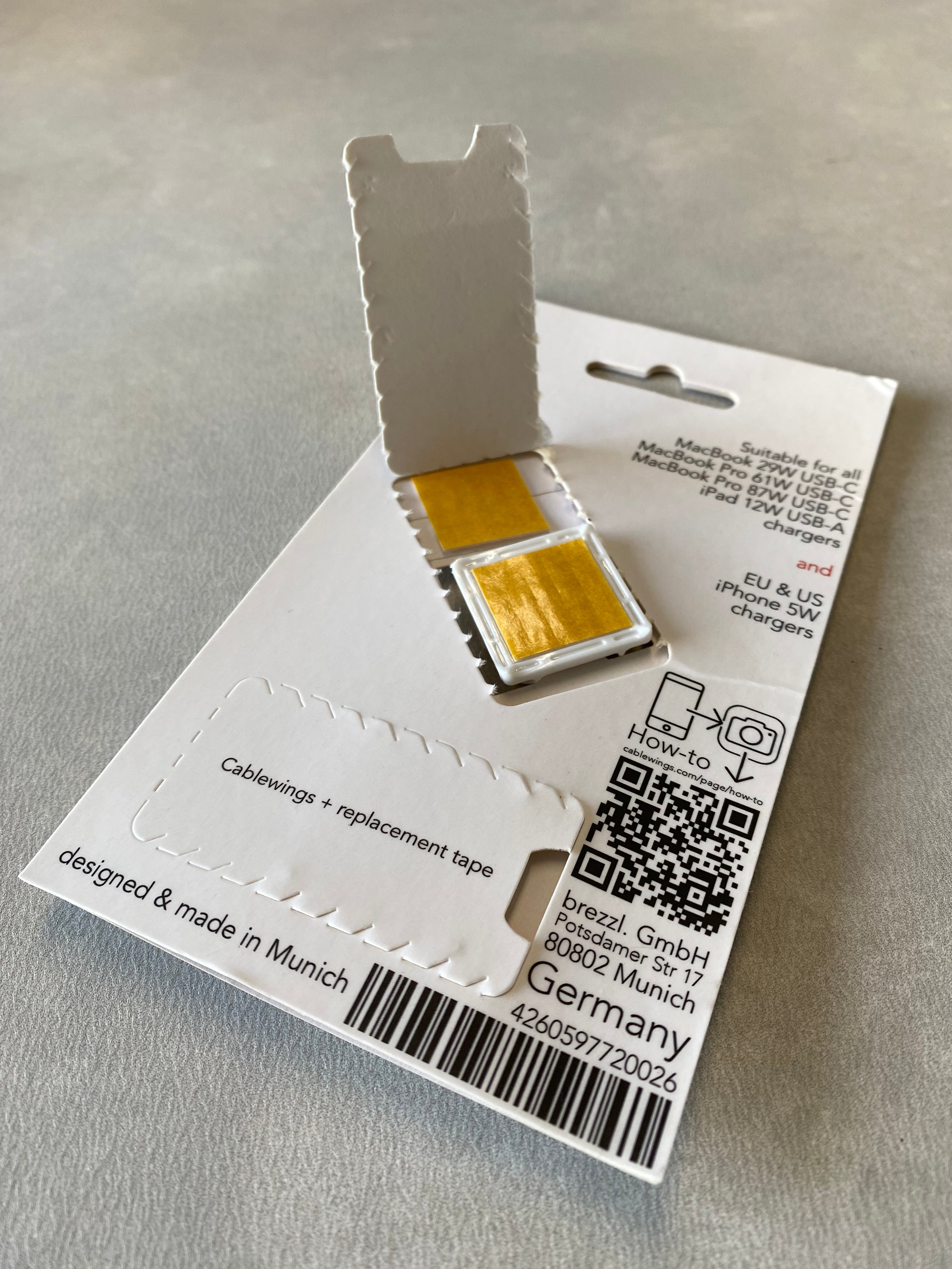 Open the package by pulling the cover. Important: You will find two replacement tapes, so in case the tape gets dirty, you can replace it. However the tape is removable without any estate. The tape is a high quality product provided by tesa®.