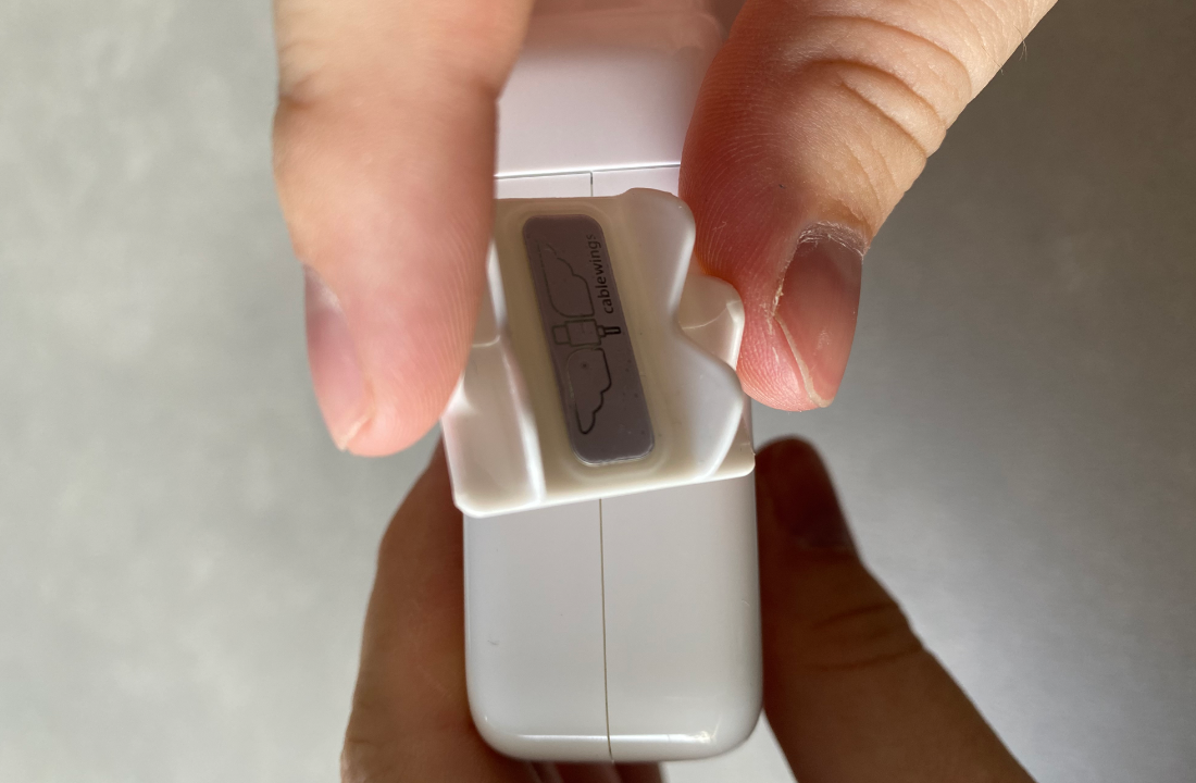 ... and push the Cablewings on your charger. If you travel and change the plugs take care not to cover the plug.